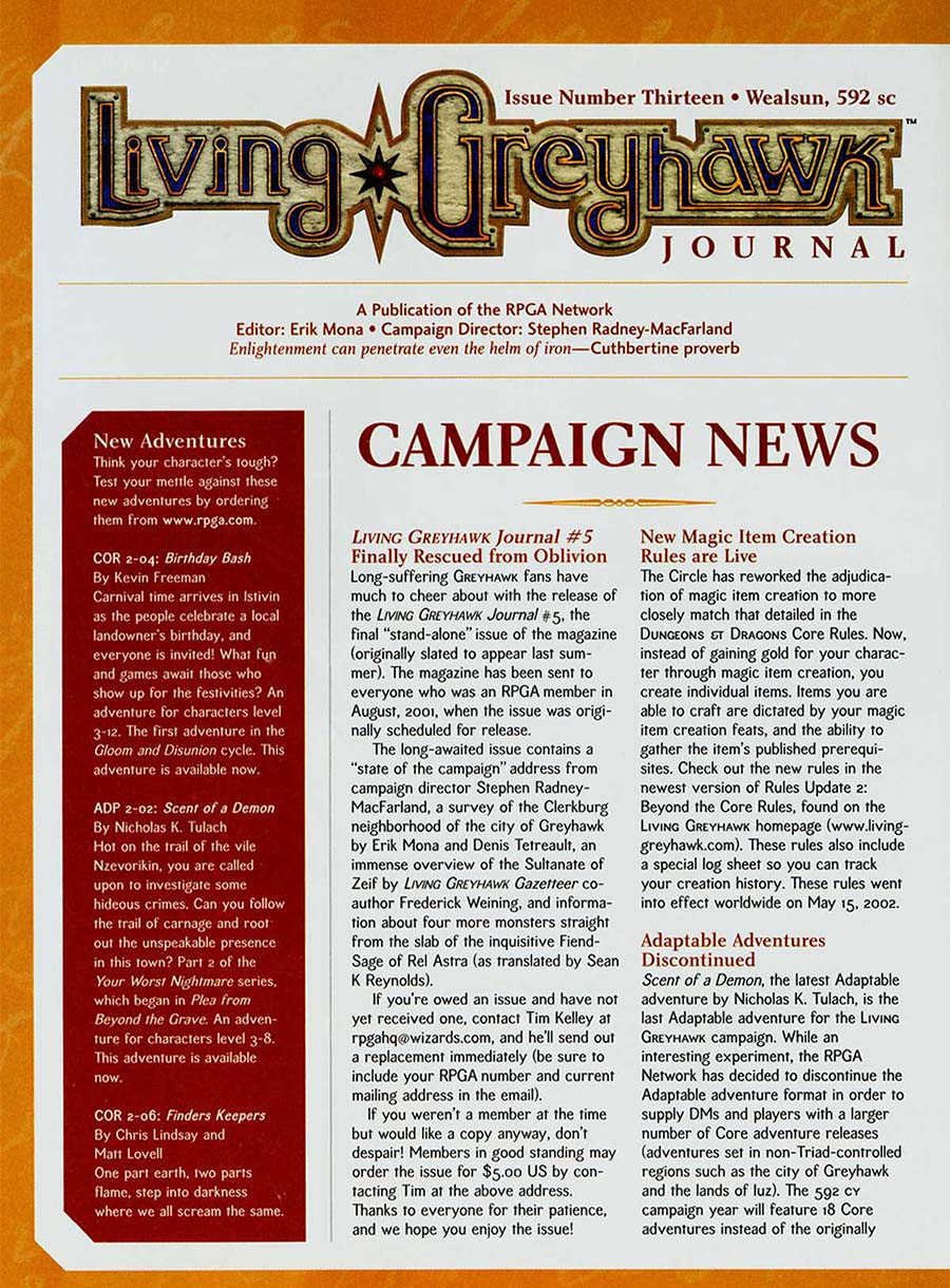 | Misc, Living Greyhawk, Dispatches | |||||||