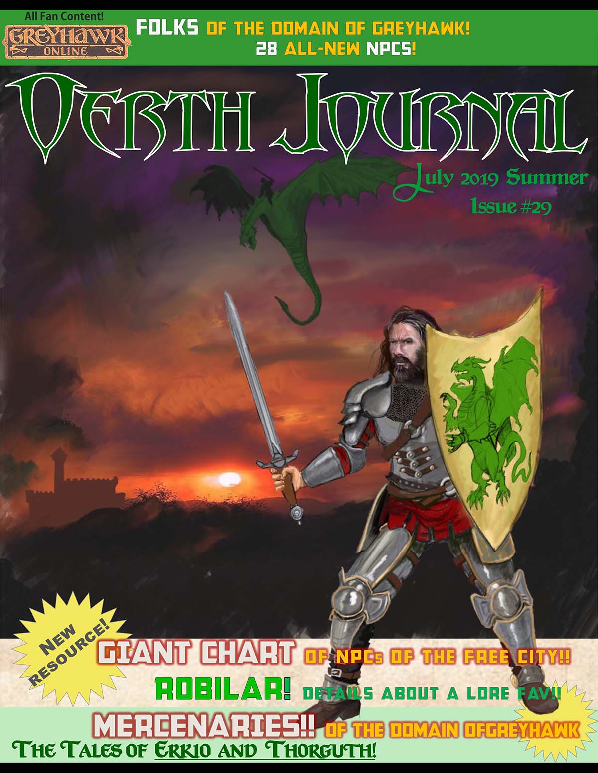 This was at last a recipe of success for v2 of The Oerth Journal. Miller would be the editor to offer a long-lived vision for Oerth Journal, with a reign running for six years, through Oerth Journal #26. Under Miller's leadership, Oerth Journal developed into a modern digital fanzine, with full-color art and professional layout. His issues generally returned to the early design of crunchy material such as adventures, NPCs, and gods, married to gazetteers of Greyhawk lands. Most issues had a half-dozen or less long pieces.