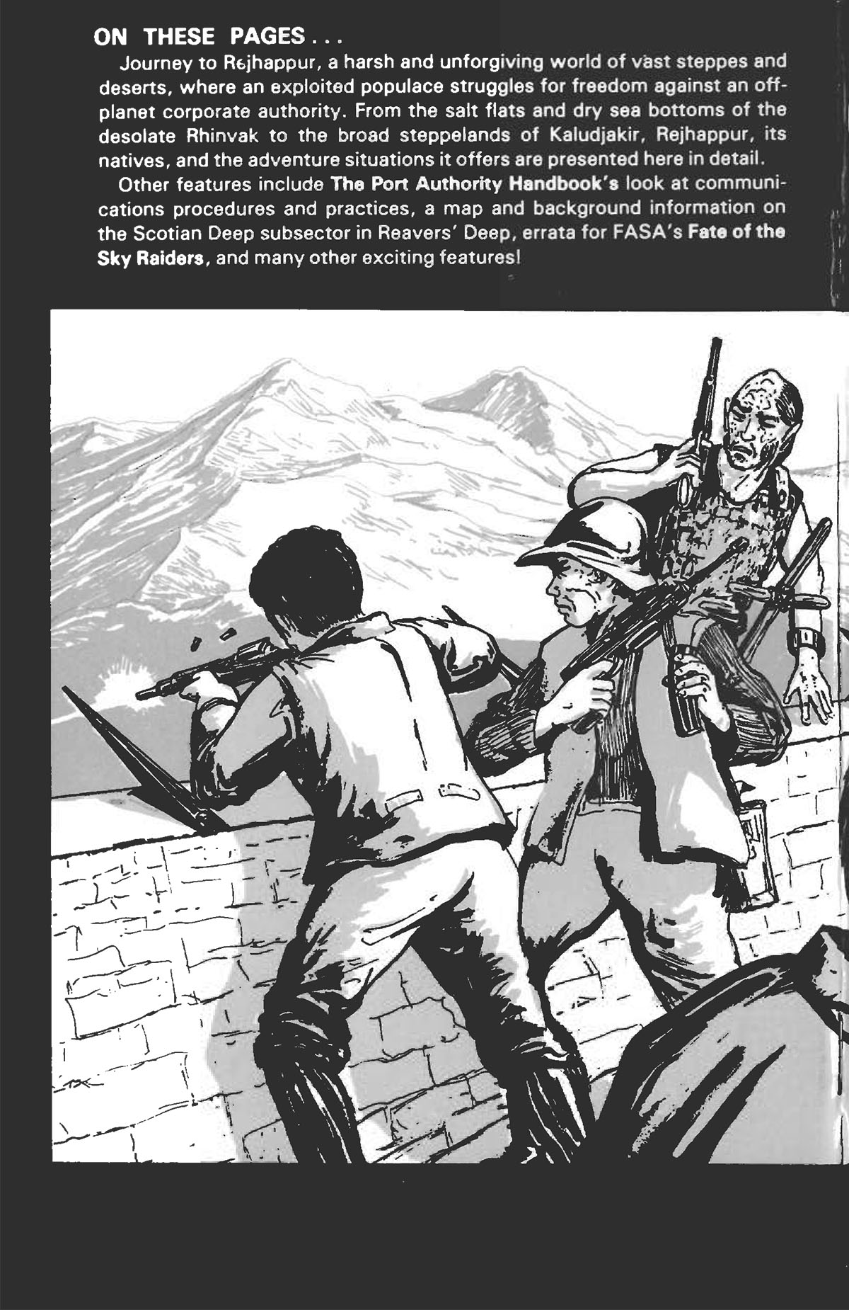 Disagreements ultimately resulted in High Passage coming to an end following that issue, but FASA and the Keiths kicked off a new magazine, Far Traveller, which picked up where they'd left off, carrying over some of the columns they'd created for the previous magazine. It had to move away from the Old Expanses, but fortunately the Keiths had a land grant of their own, and so the magazine moved to Reaver's Deep. Unfortunately, the new magazine was short-lived too, as Far Traveller trailed off after issue #2 (1983), by which time FASA had begun publishing a roleplaying game of their own, Star Trek: The Roleplaying Game (1982).